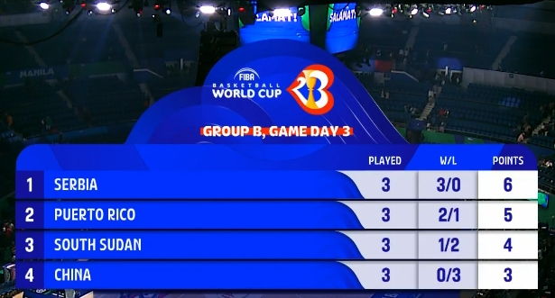 比赛上来,中国队就表现慢热处于落后,分差也是逐渐被拉开到了两位数,次节中国队陷入到得分荒,波多黎各趁势打出一波7-0的小高潮,好在是赵继伟连续命中三分才没有让分差扩大,半场结束时中国队落后15分;下半场回来中国队情况有所好转,分差一度缩小回个位数,但随着王哲林的多次空篮不进,球队的气势也被遏制住,最终中国男篮不敌波多黎各,小组赛三战全败垫底将打排位赛。