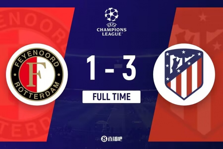 全场比赛结束,马竞3-1费耶诺德。