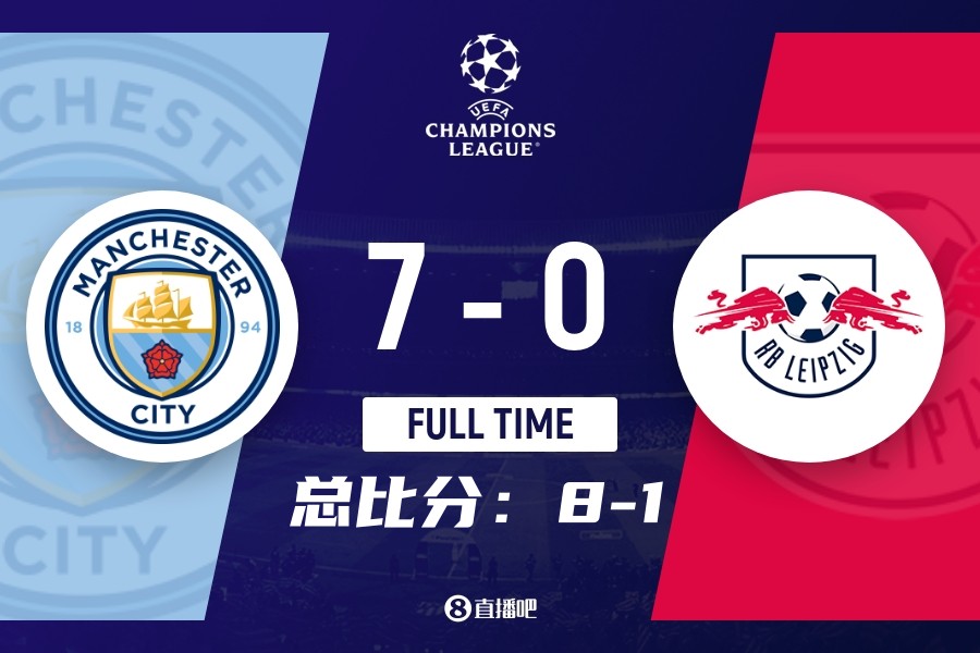 欧冠-哈兰德五子登科+半场戴帽 曼城7-0莱比锡总比分8-1晋级八强