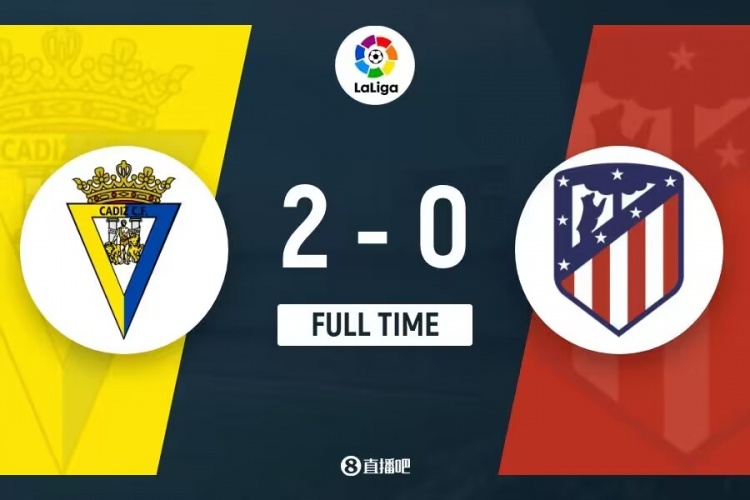 全场比赛结束,马德里竞技0-2加的斯。
