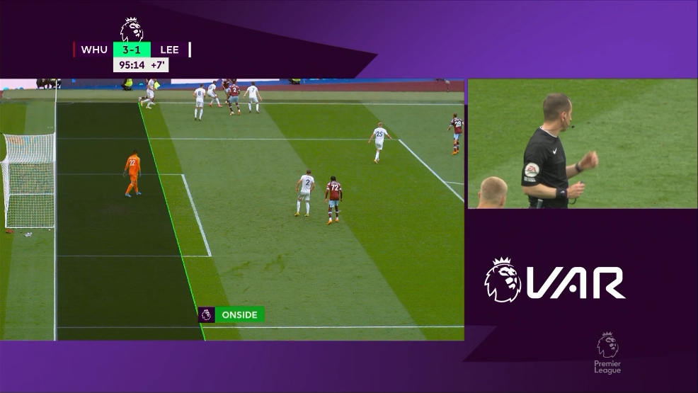 第94分钟,帕奎塔底线附近天秀过人送传中,兰奇尼包抄破门,VAR判定帕奎塔没有越位,西汉姆3-1锁定胜局。