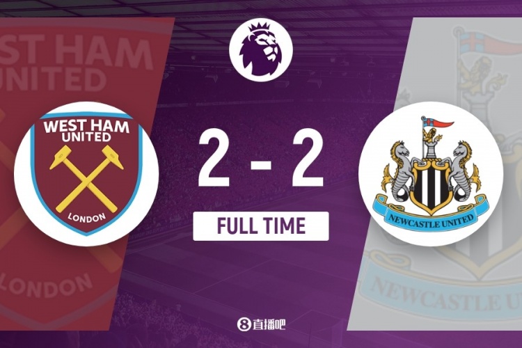 伤停补时6分钟。全场比赛结束,西汉姆2-2纽卡斯尔。