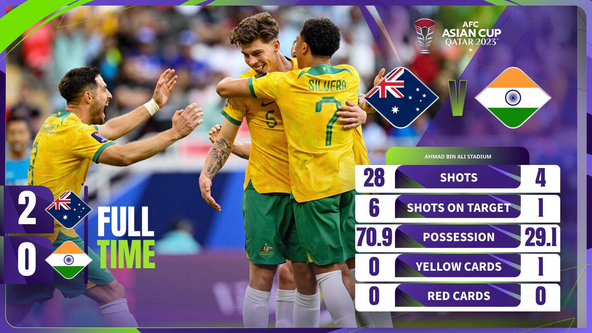 亚洲杯-澳大利亚2-0印度迎开门红 印度门将送礼&袋鼠狂轰28脚