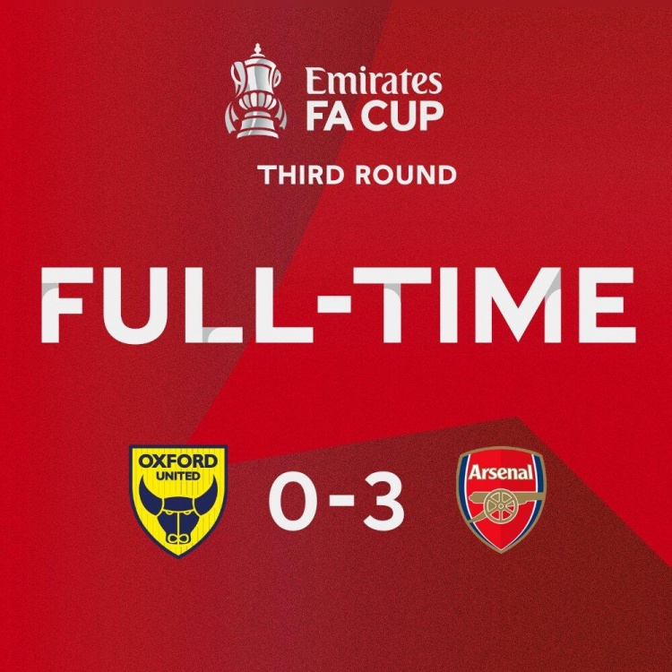 1月10日讯 北京时间1月10日凌晨4时,足总杯第3轮,阿森纳客场对阵英甲球队牛津联。上半场双方均无建树。阿森纳半场0-0战平牛津联。下半场,埃尔内尼首开纪录,随后恩凯提亚梅开二度。最终阿森纳3-0击败牛津联,晋级足总杯第4轮,将对阵曼城。