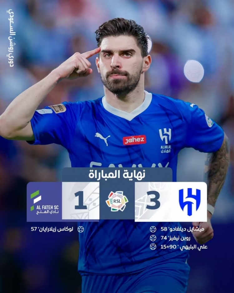 4月27日讯 北京时间4月26日晚23时整,2023-24赛季沙特联第29轮展开角逐,利雅得新月坐镇主场迎战哈萨征服,上半场新月仅1脚射正,下半场泽拉拉扬打破僵局,迈克尔闪电扳平,内维斯点射反超,布莱希补时第15分钟破门。最终利雅得新月主场3-1逆转哈萨征服,积分榜方面,新月联赛28轮保持不败,联赛剩6轮以12分优势领跑。
