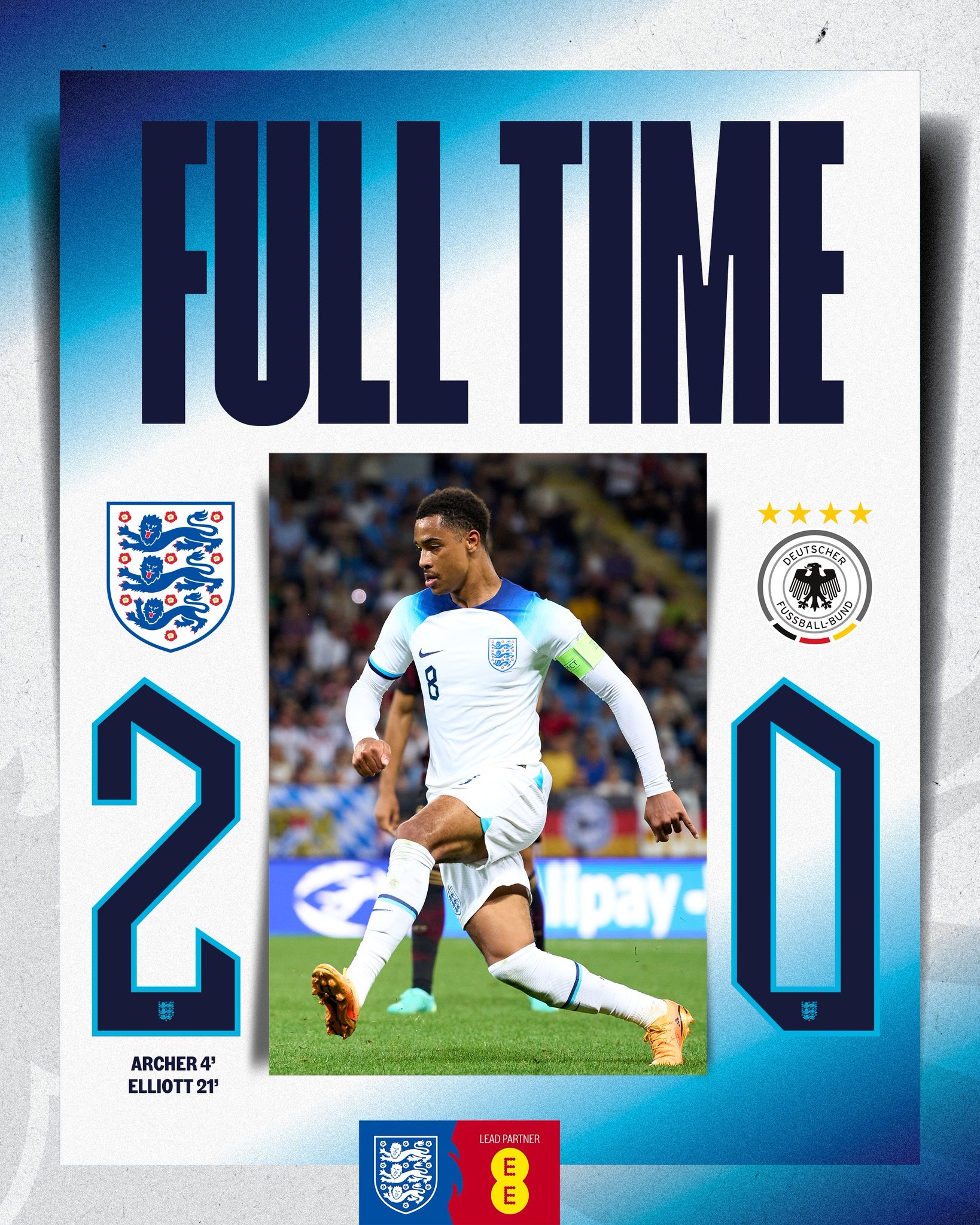 欧青赛-英格兰2-0送德国小组赛2负1平垫底出局 埃利奥特一条龙