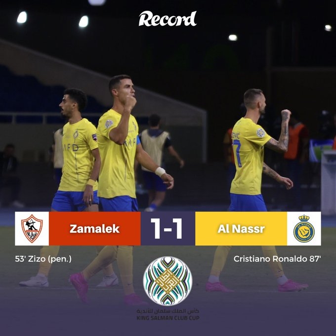 阿拉冠-C罗绝平马内首秀特莱斯送点 利雅得胜利1-1扎马雷克进8强