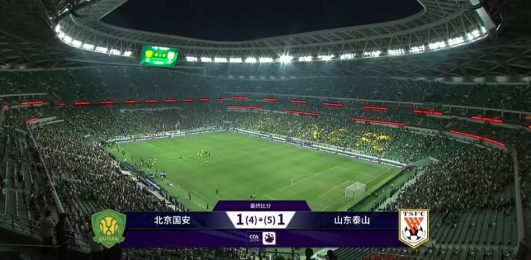 最终点球大战比分为泰山5-4国安,全场比赛总比分泰山6-5国安。