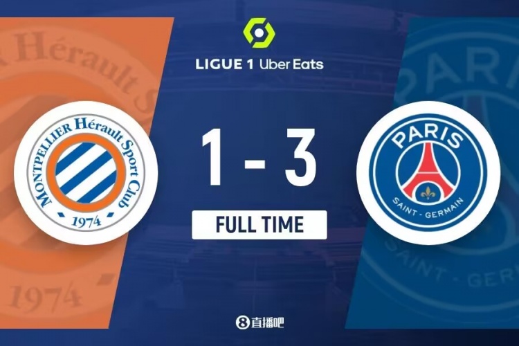 下半场伤停补时4分钟,全场比赛结束,最终巴黎3-1击败蒙彼利埃。