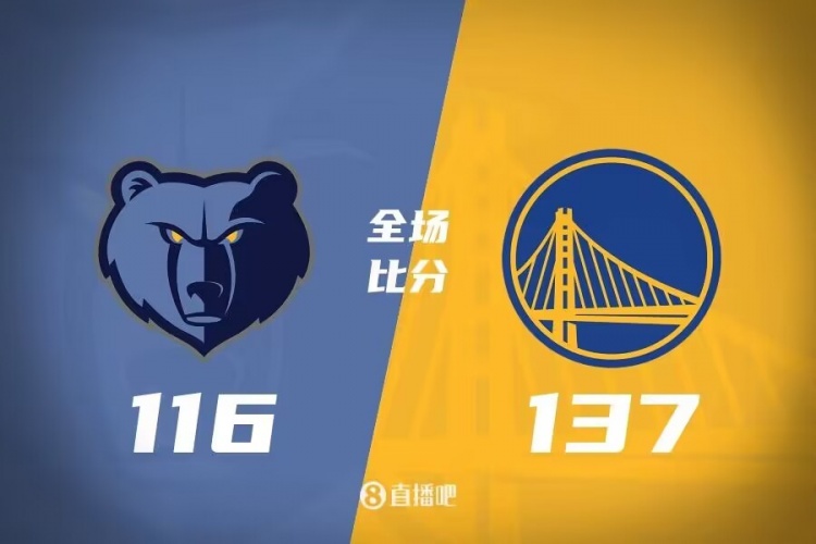 比赛上来,勇士外线多点开花打出13-5不错开局,随后灰熊也是连续4记三分强势回应咬住比分,双方展开拉锯战,灰熊一波9-2反超比分,但TJD2+1助勇士首节领先1分,次节波杰姆斯基嘴部受伤离场,双方再次在外线展开对飚,保罗里突外投连续取分,阿尔达马外线接连三分强势回应,最后2分钟勇士一波10-0结束半场。下半场,双方继续对攻,GG-杰克逊单节弹无虚发撑起球队进攻,但维金斯状态也不错,克莱外线也能给予支持,勇士单节轰40分领先到18分,末节TJD上来接连吃饼,勇士运转球十分流畅直接拉开20分以上领先,最终勇士137-116大胜灰熊,送对手4连败。