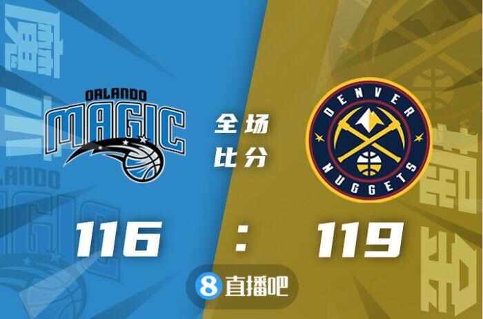 此役一上来魔术反客为主率先占优,班凯罗和富尔茨联手取分,中段掘金及时复苏,约基奇率队一波8-0成功反超,首节结束时掘金暂时领先6分,次节回来,戈登突然爆发里突外投单节独得12分,双方你来我往火热对攻,半场战罢,掘金已经领先15分。下半场回来,富尔茨连续杀伤,魔术多点开花继续追分,末段掘金及时回应守住优势,三节结束后掘金依然领先6分,末节上来,波尔-波尔内线予取予求,魔术延续势头一举反超,决胜时刻波普联手戈登保留悬念,约基奇撤步三分一箭穿心上演准绝杀,魔术仅剩0.2秒回天乏术,最终掘金119-116险胜对手。