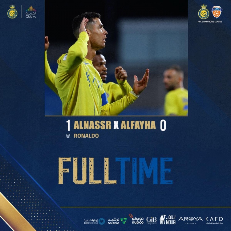 亚冠-C罗里程碑之战收获亚冠淘汰赛首球 利雅得胜利1-0费哈占先机