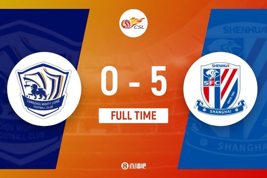 全场比赛结束,上海申花5-0大胜沧州雄狮。
