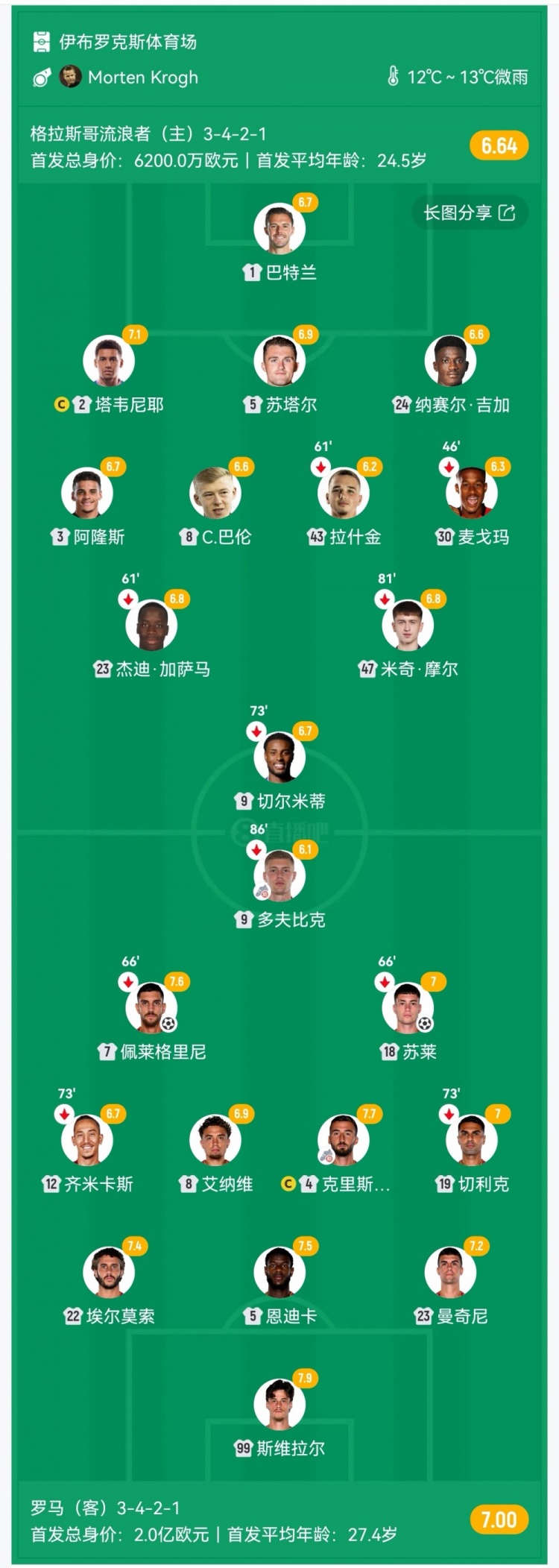 下半场补时3分钟。最终全场比赛结束,流浪者0-2罗马。