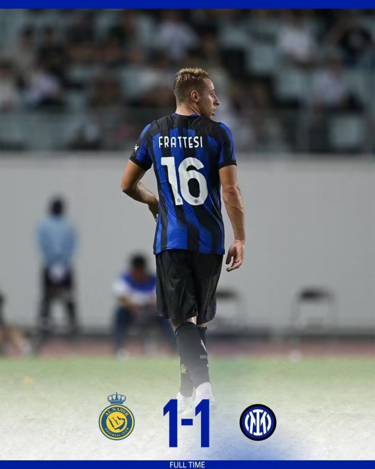 全场比赛结束,利雅得胜利1-1国际米兰。