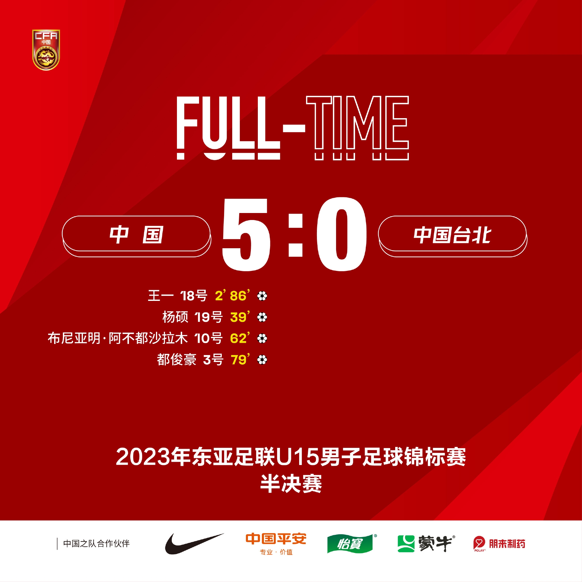 晋级决赛!U15东亚杯-国少5-0中国台北,将与日本争夺冠军